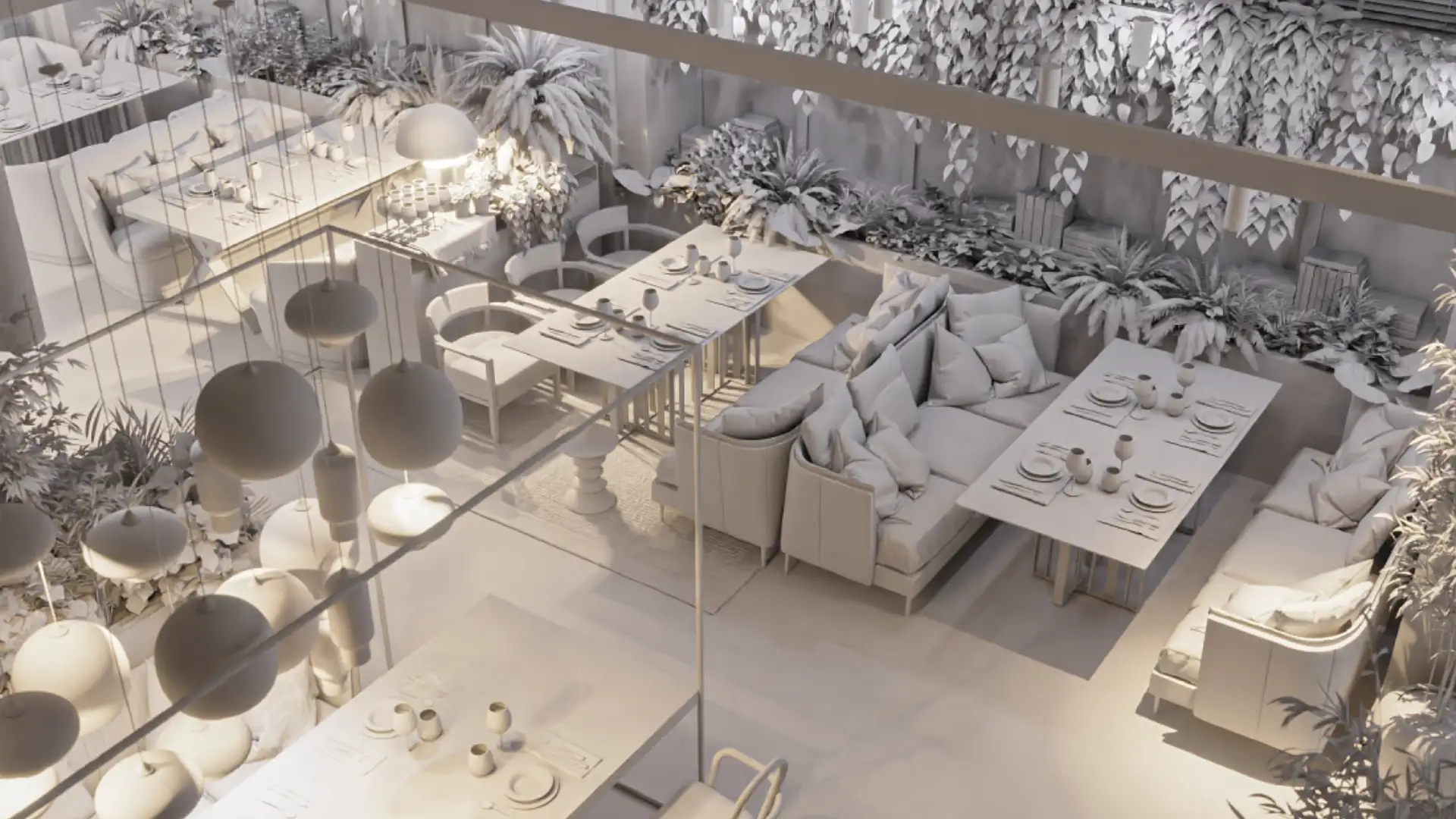 Le Studio L4M a réalisé la conception et de la mise en scène 3D de cet espace intérieur imaginé comme un restaurant haut de gamme au caractère chaleureux et végétalisé. Le projet comprend la modélisation complète de l’espace, l’aménagement du mobilier, l’intégration des matériaux et la création d’une atmosphère lumineuse permettant d’exprimer pleinement l’intention architecturale.